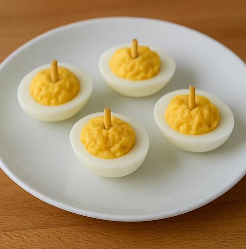 Easy Pumpkin Deviled Eggs That Look Like Mini Pumpkins