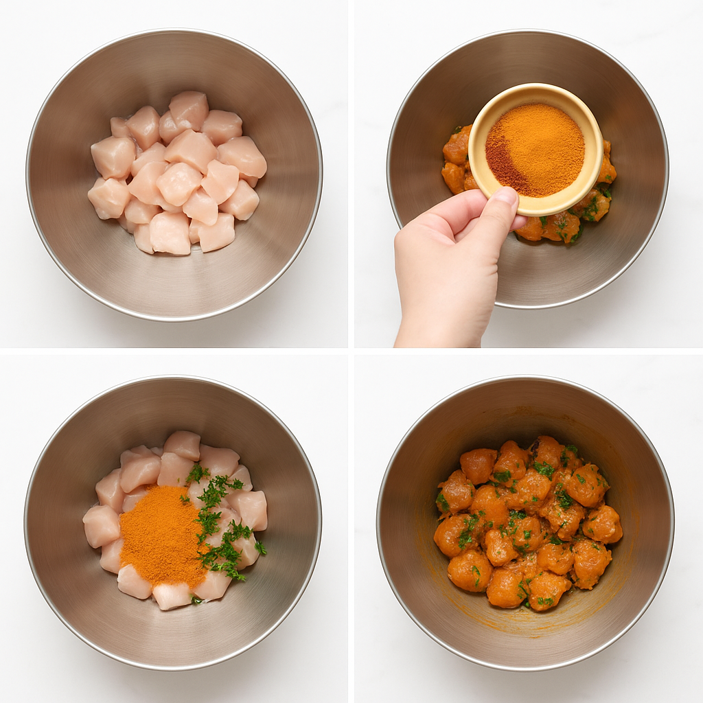 - If you have time, marinate the chicken in the spice mix for at least 30 minutes (or longer) to develop deeper flavors.