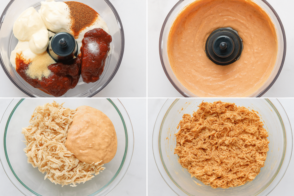 Save time by using store-bought rotisserie chicken. It’s juicy, flavorful, and shreds easily. - Don’t Skip the Food Processor