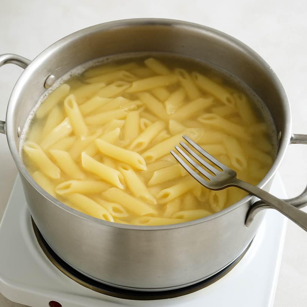 Bring a pot of salted water to a boil. Add penne and cook for 10–15 minutes until tender. Drain and set aside.