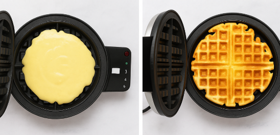 Before cooking, give the batter a quick whisk to recombine—it may deflate slightly, which is normal. Spray the waffle iron with non-stick cooking spray and cook the waffles according to the manufacturer’s instructions until golden and crisp.