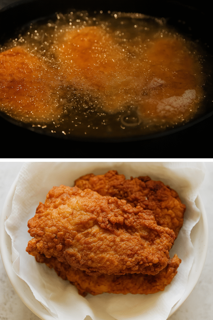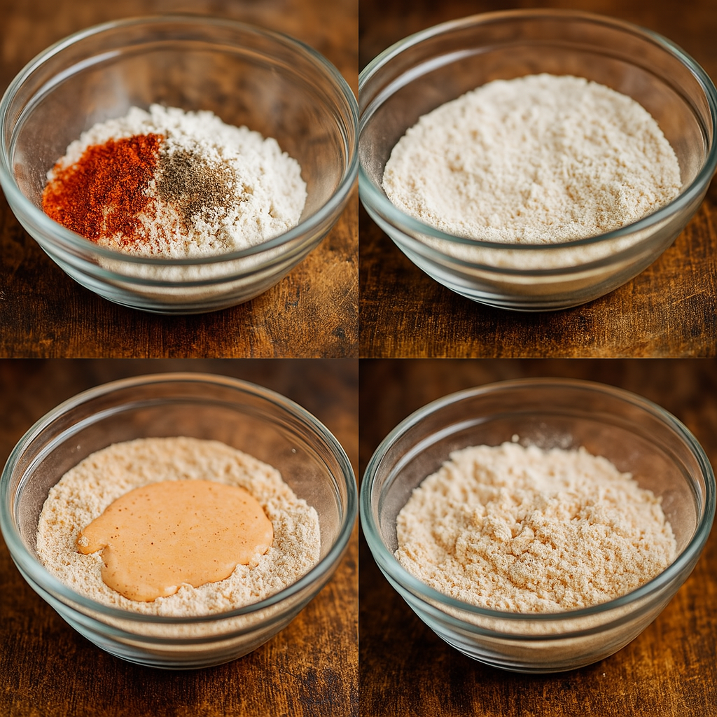 Take the marinated chicken strips and coat them thoroughly in the flour mixture. For an extra crispy crust, dip them again in the flour mixture a second time. Place the coated chicken pieces on a sheet of parchment paper and let them rest while the oil heats.