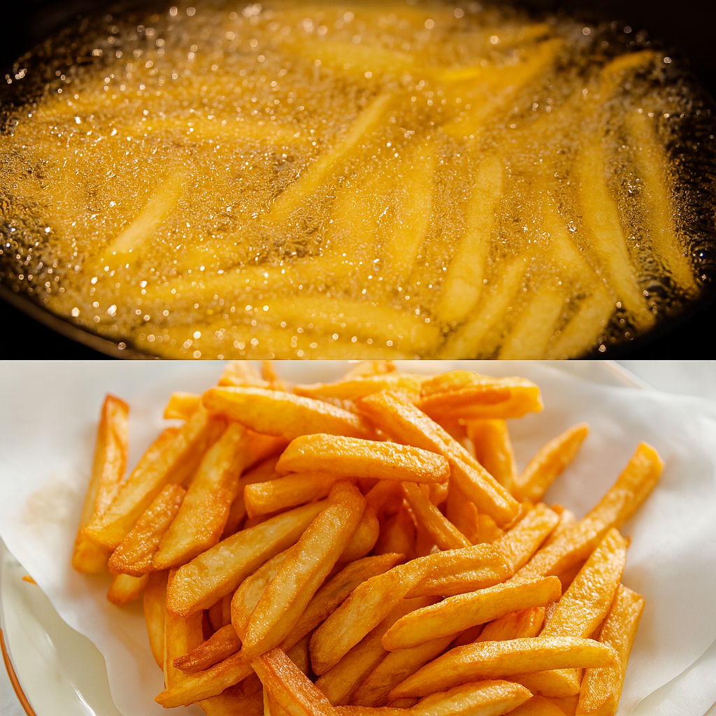 Heat sunflower oil in a frying pan over medium heat. Add the fries and cook for about 13–15 minutes, or until golden brown and crispy. Remove from the pan and let them drain on a sheet of paper towel.