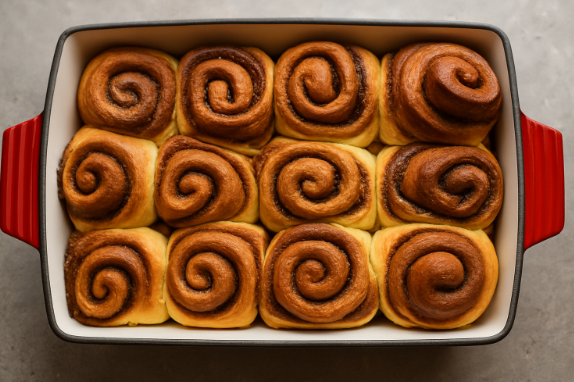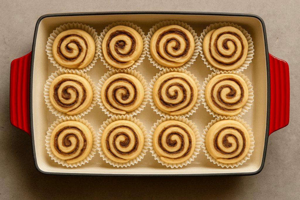 Bake the cinnamon rolls in a preheated oven at 180°C (350°F) for 15–20 minutes, or until golden brown. Keep an eye on the baking time, as every oven is different.