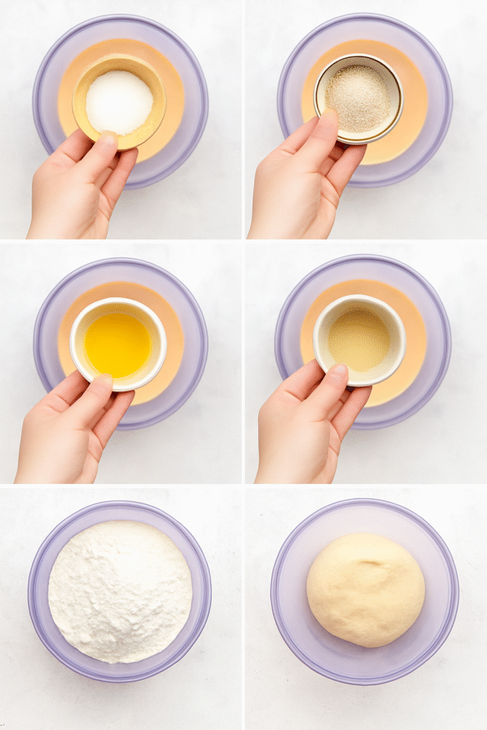 Mix flour, sugar, yeast, and salt. Add milk, egg, and butter to form a soft dough. Knead and let rise for 1 hour.