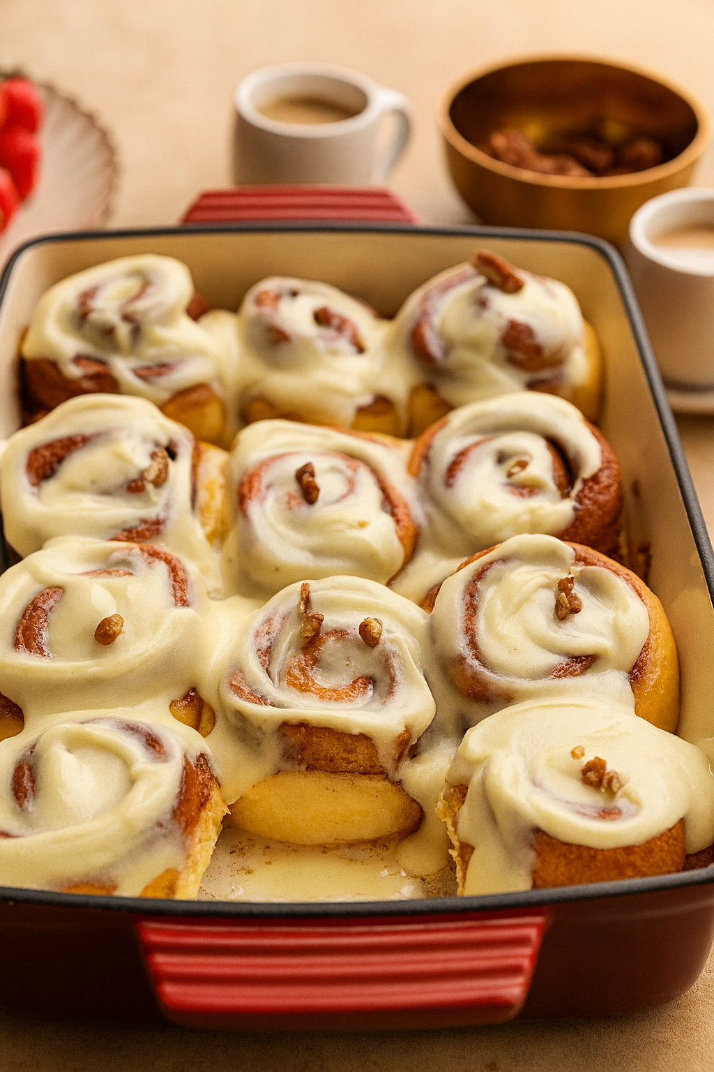 There’s nothing more comforting than the smell of freshly baked cinnamon rolls coming out of the oven. These soft cinnamon rolls with a rich, creamy topping are the perfect treat for breakfast, brunch, or dessert. Fluffy, gooey, and full of cinnamon flavor, this easy homemade recipe guarantees bakery-style results right from your kitchen. If you love soft, sweet bakes, you should also try our Fluffy Griesmeel Pancakes — another crowd-pleasing favorite!